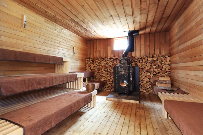 エコーランドの森に佇む貸切サウナ。薪ストーブの柔らかい熱と、北アルプスの伏流水風呂。自然と一体化する贅沢な時間を。
